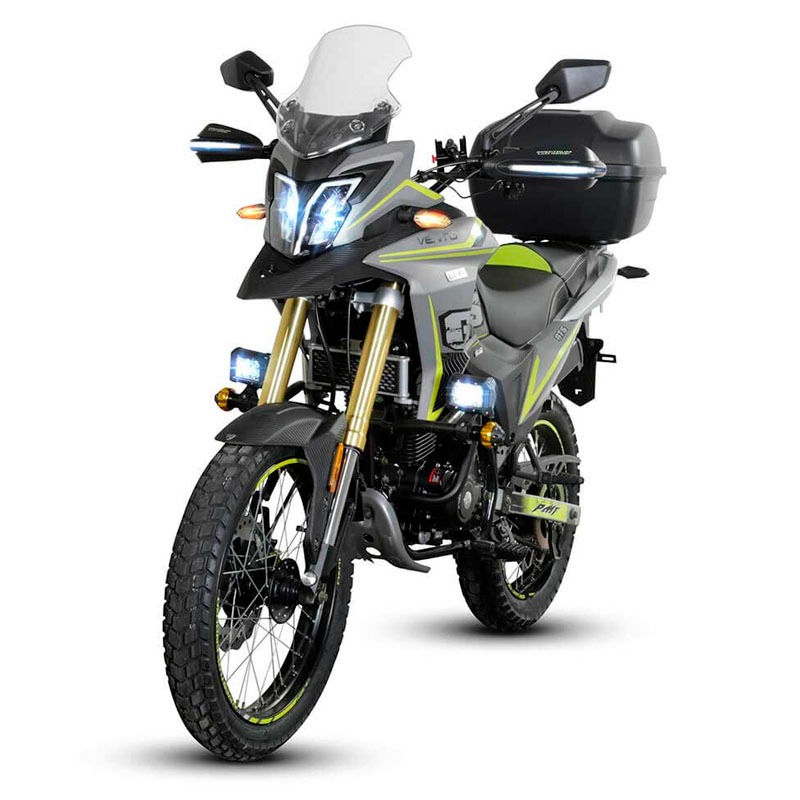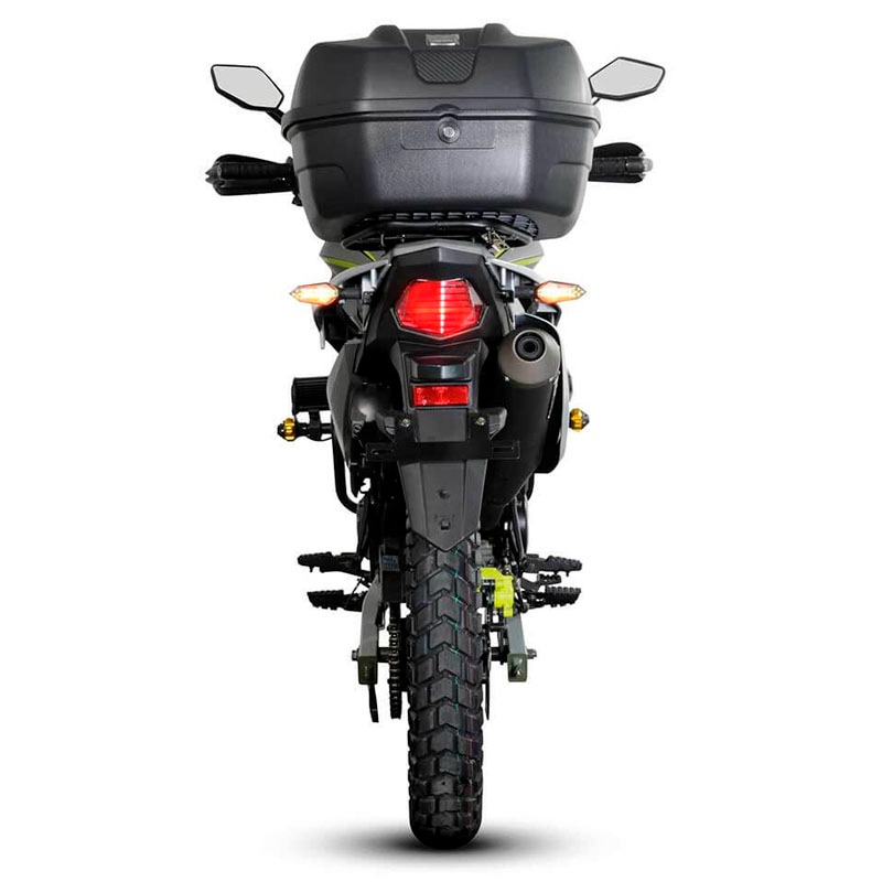 Tiene transmisión estándar de 6 velocidades, con sistema de arranque eléctrico y de patada. Su depósito de combustible es de 14 litros, con sistema de frenado de disco. También trae luces led, funcionales para los días de densa neblina. Es capaz de soportar hasta 150 kilogramos.