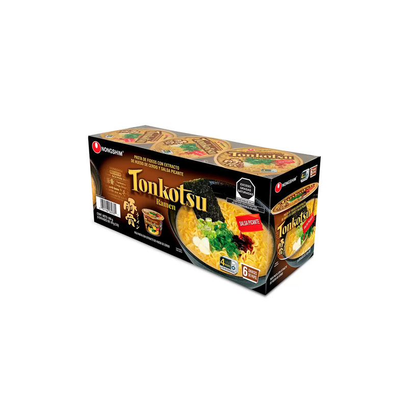 Fideos brillantes y masticables combinados con un caldo espeso de cerdo, ajo y jengibre. Nuestro ramen inspirado en el Tonkotsu Bowl complacerá incluso a los más exigentes.