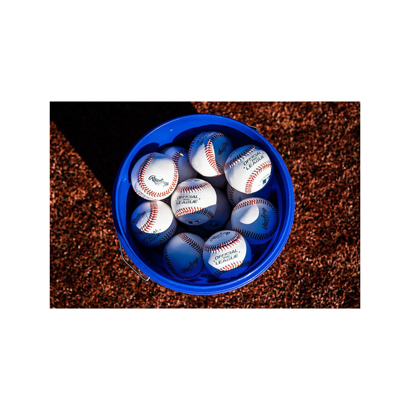 24 pelotas de béisbol en un práctico cubo de almacenamiento