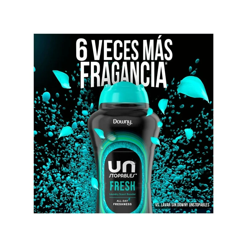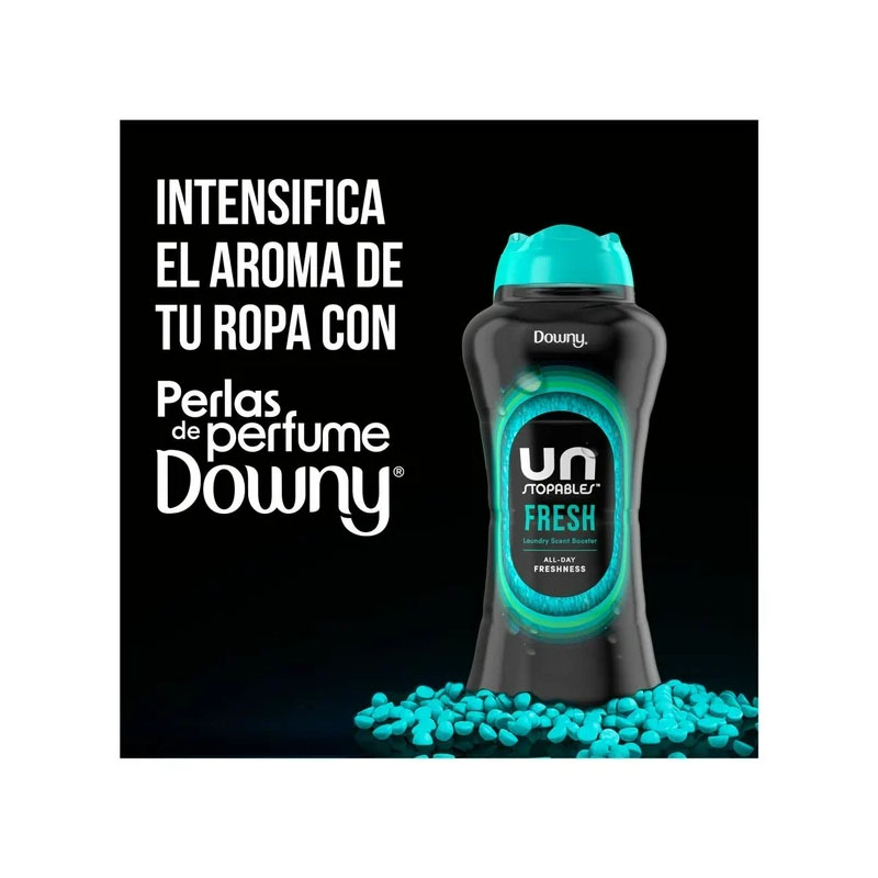 Downy Unstopables Fresh son pequeñas perlas de perfume para ropa que funcionan dentro de tu lavadora e intensifican el olor de tu ropa. Su fórmula ofrece hasta 12 semanas de frescura del lavado hasta el uso. Antes de agregar la ropa, simplemente agrega tantas perlas de perfume Downy Unstopables como desees en la tapa, y luego arrójalas al tambor de la lavadora. Puedes usar las perlas en todos tus lavados y en cualquier tipo de lavadora.