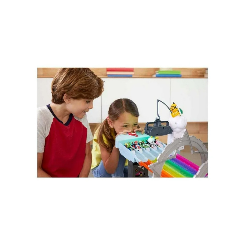 La Pista Senda Arcoíris de Hot Wheels Mario Kart recrea la pista más icónica del videojuego con un circuito de 2.43 metros compuesto por 5 tramos configurables en forma recta o curva, ofreciendo múltiples formas de juego; incluye 2 karts metálicos a escala 1:64 de Mario y Rey Boo, con espacio para competir contra hasta 3 vehículos adicionales (se venden por separado), además de efectos de luces y sonidos, cuadros de objetos aleatorios y una meta con tablero electrónico que anuncia al ganador, brindando horas de diversión llenas de velocidad, emoción y sorpresas para fans de Mario Kart y Hot Wheels de todas las edades.