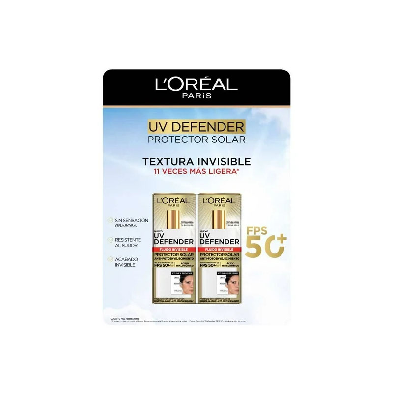 Protector Solar Diario LOréal UV Defender Fluido Invisible Anti Fotoenvejecimiento 2 Pack 40 g