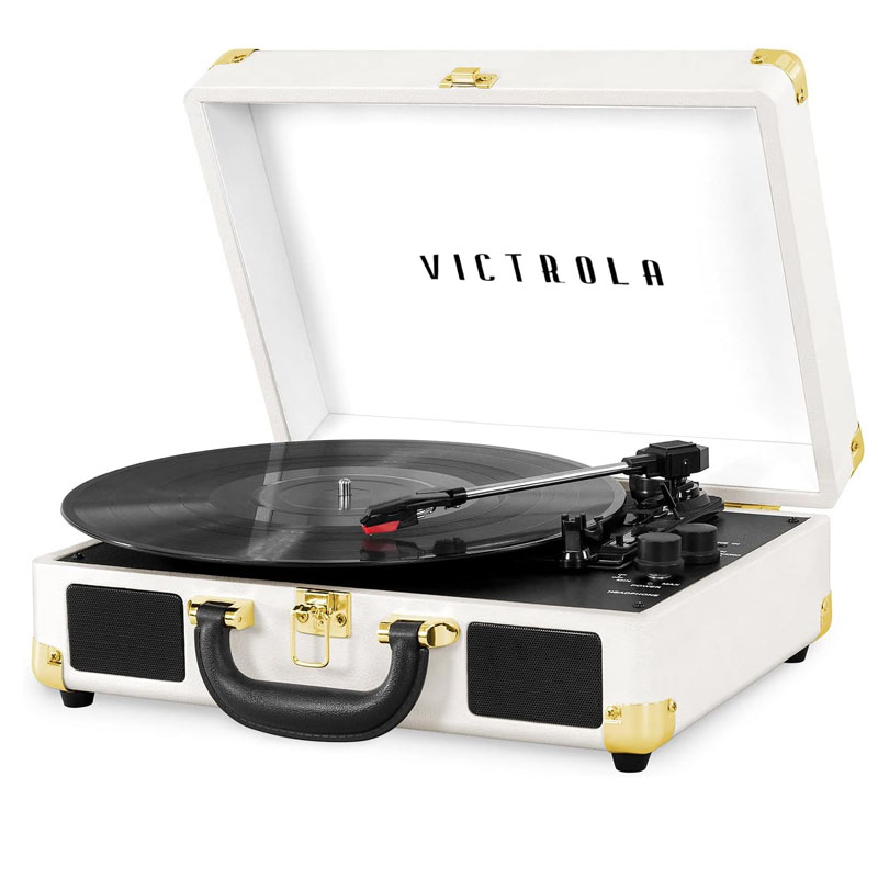 este tocadiscos de maleta de 3 velocidades (33 1/3, 45, 78 rpm) cuenta con una calidad de sonido premium mejorada y se asienta en pies aislantes de sonido que evitan la vibración. Es perfecto para tu sala de estar, dormitorio u oficina.