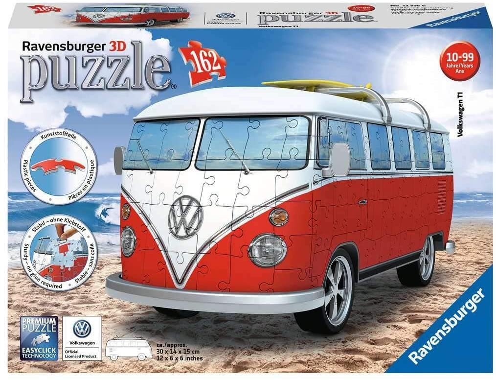 Una hermosa reproducción en 3D de la mítica autocaravana Volkswagen. Rompecabezas de 162 piezas. Cada Pieza es única, tecnología Softclick Que Significa Que Las Piezas se Ajustan Perfectamente.