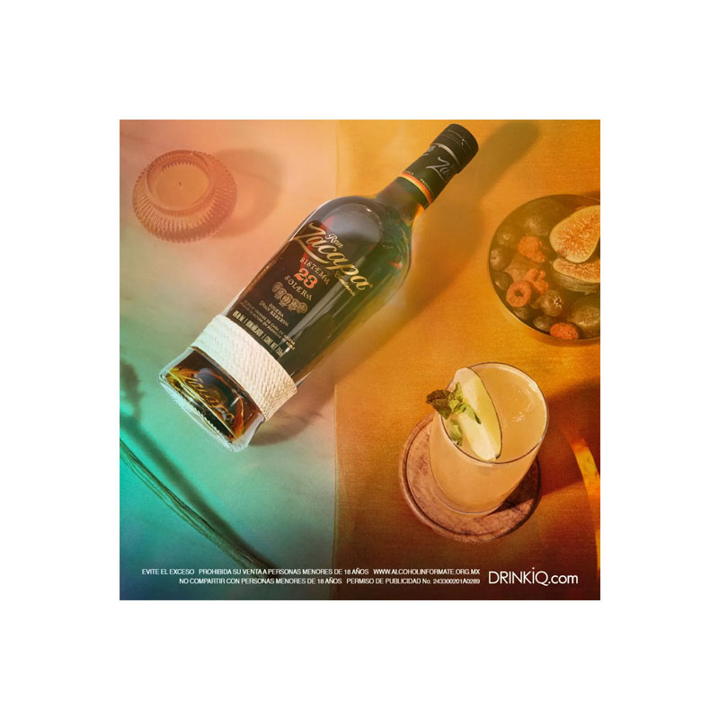 Ron Zacapa 23 se elabora utilizando el Sistema Solera de añejamiento, donde se mezclan y maduran rones de distintas edades y personalidades en barricas previamente utilizadas para envejecer whiskies americanos, delicados vinos de Jerez y finos vinos de Pedro Ximénez. Zacapa 23 incluye mezclas de rones con edades que van desde 6 hasta 23 años, creando un perfil complejo y refrescante que lo hace ideal para disfrutar solo o en cócteles. Este ron ofrece deliciosas notas de caramelo, roble, especias, frutas y pasas.