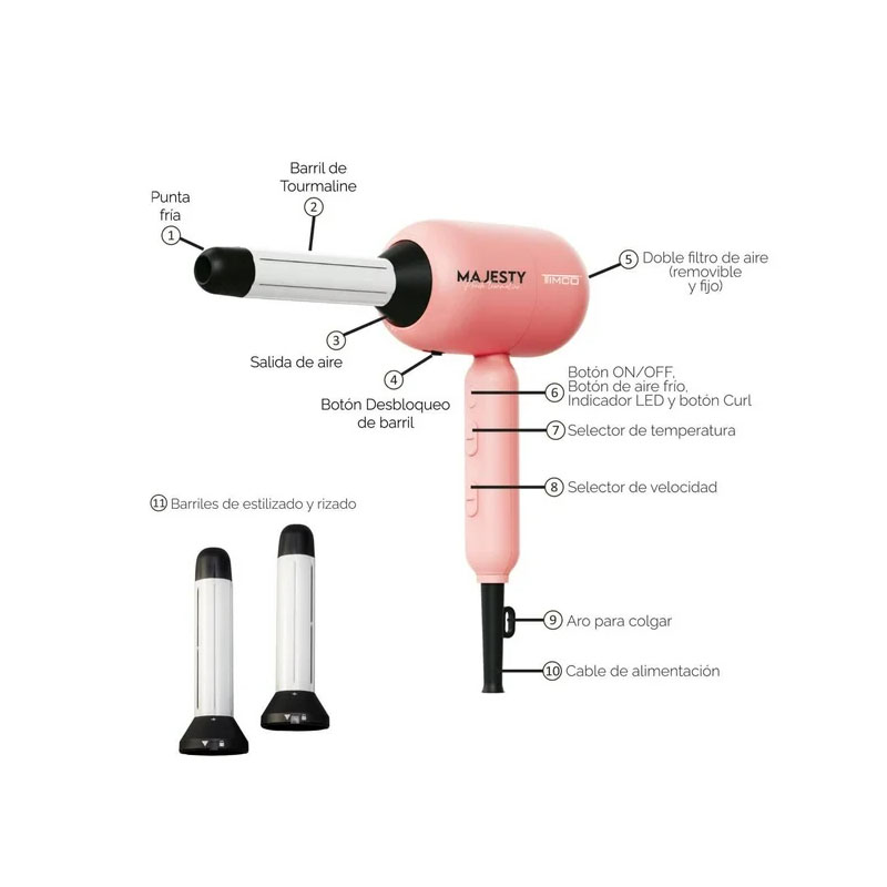 Secadora Estilizador y Rizador Eléctrico Timco Majesty Peach Tourmaline