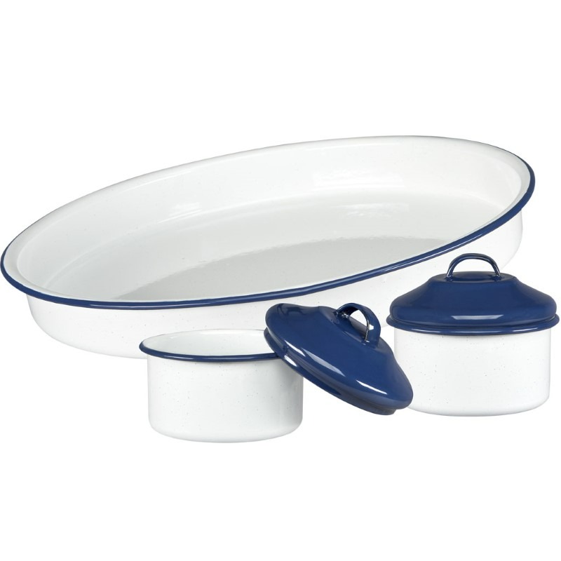 Fabricados en acero vitrificado color blanco con filo azul.