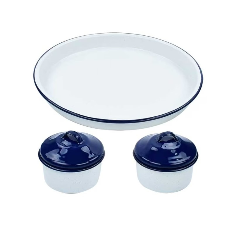 Set de servicio charola de 38 cm con 2 diperos 10 cm con tapa.