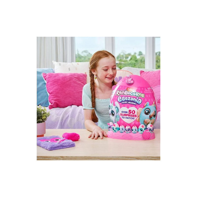Eggzania Fairy Mania ofrece más de 50 sorpresas en cada huevo, incluyendo 9 nuevos yolkies, 3 Fairy Eggzania, slime, burbujas y accesorios portables para transformarte en un hada. Con un peluche sorpresa y elementos mágicos para coleccionar y jugar, cada apertura brinda horas de creatividad y diversión encantada. (El modelo de peluche puede variar según disponibilidad.)