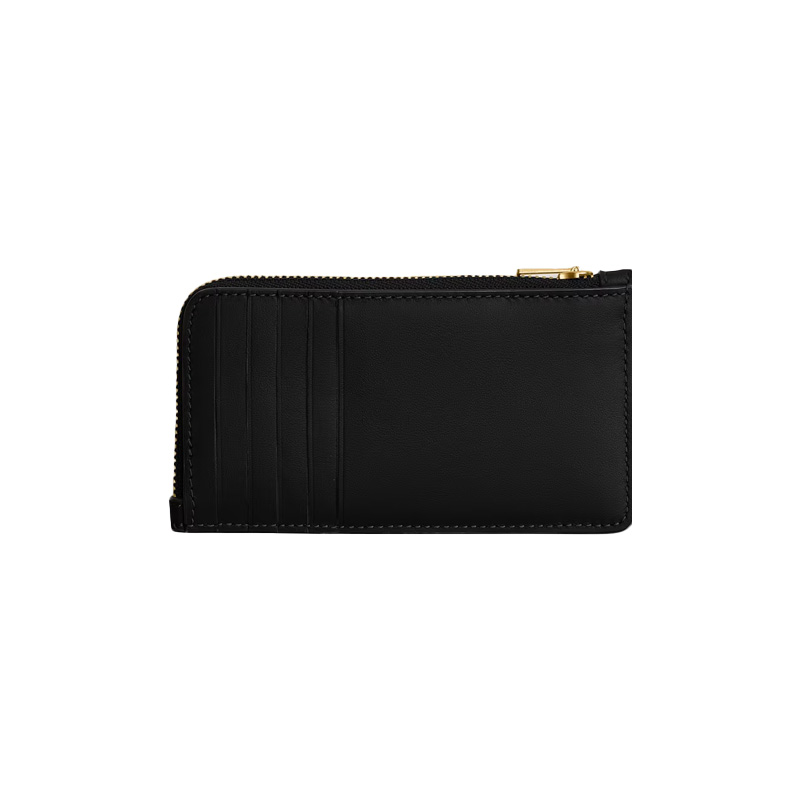 Tarjetero COACH elaborado en piel con acabado liso, nombre de la marca a contraste, pespuntes a tono y compartimiento principal con cremallera.