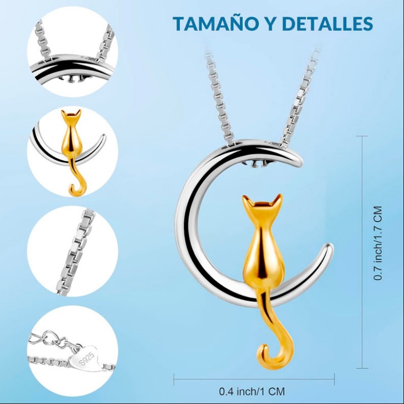 DISEÑO ÚNICO: Bonito diseño de gato y luna, este collar con colgante de plata de ley será un verdadero punto culminante para todas las mujeres. Se puede usar todos los días para un look informal y combinarlo con el colgante del collar a juego para completar su atuendo.